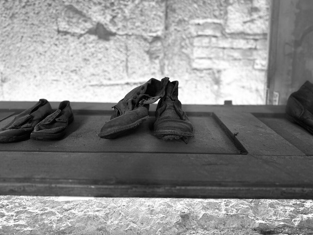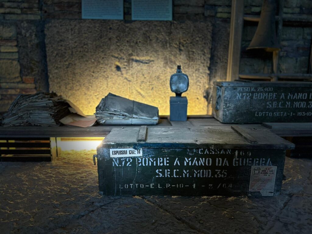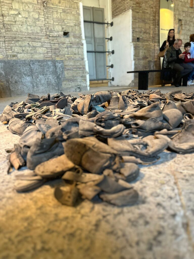 L’esposizione è tutta in una stanza, nell’antico refettorio. Gli oggetti sono quelli ritrovati: pentolame, scarpe, letti, qualche foto in originale che restituisce qualche volto, qualche lattina risalente alla seconda guerra mondiale.