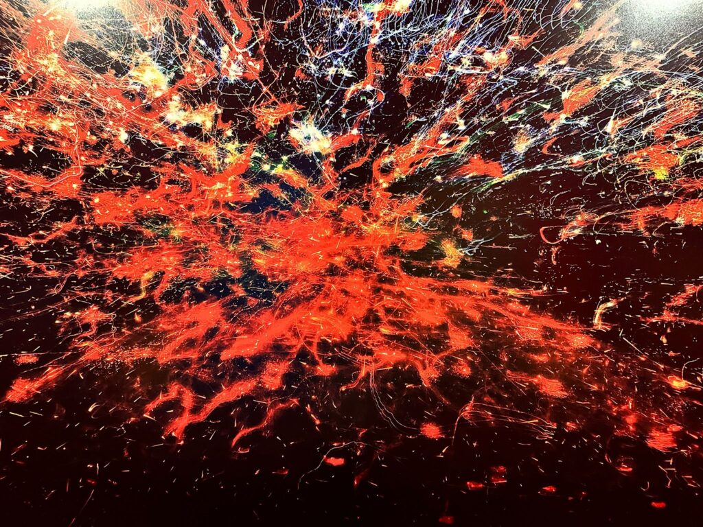 Se l’esposizione del piano terra, seppur suggestiva, non è riuscita a restituire le storie, Explosion di Mario Amura invece non ha bisogno di parole.
