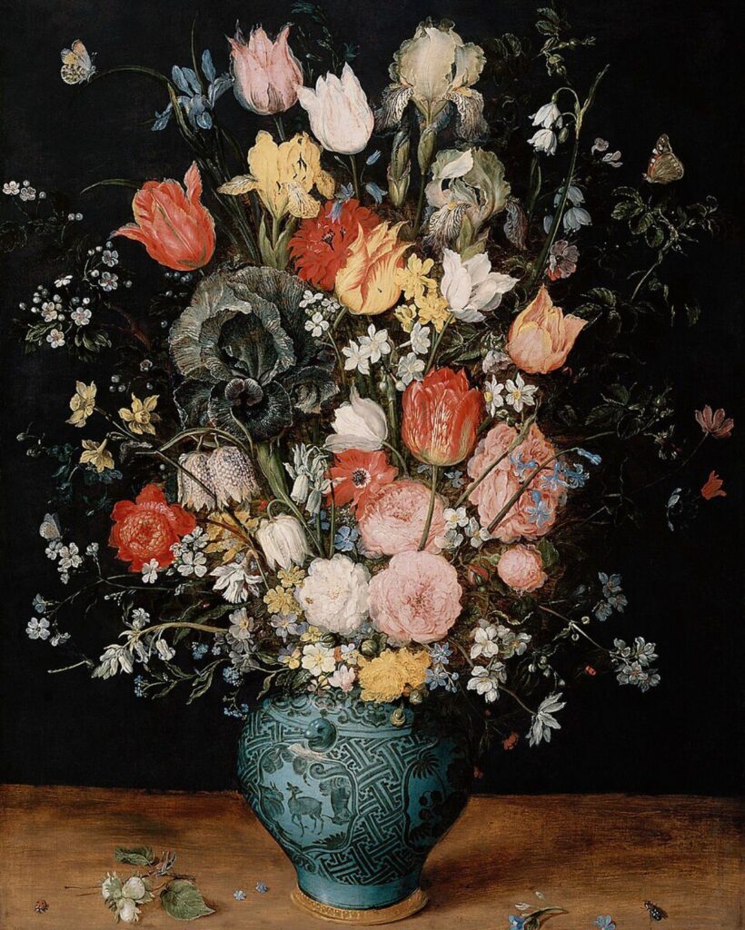 Accanto ai grandi nomi della pittura di corte, il percorso lascia spazio anche alla pittura fiamminga di paesaggio e di natura. Tra gli artisti presenti spicca Jan Brueghel il Vecchio, erede della grande tradizione pittorica inaugurata dal padre Pieter Bruegel. Le sue composizioni minuziose – dai paesaggi alle raffinate nature morte floreali – rivelano il gusto descrittivo e prezioso tipico della pittura fiamminga del primo Seicento, molto apprezzato nelle collezioni degli Asburgo.